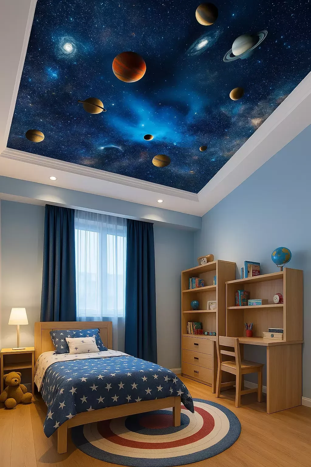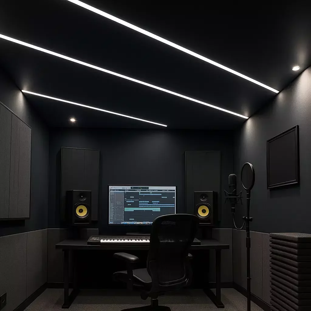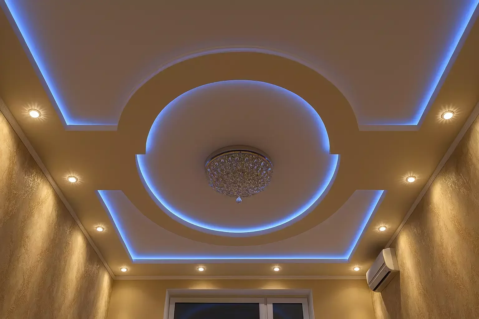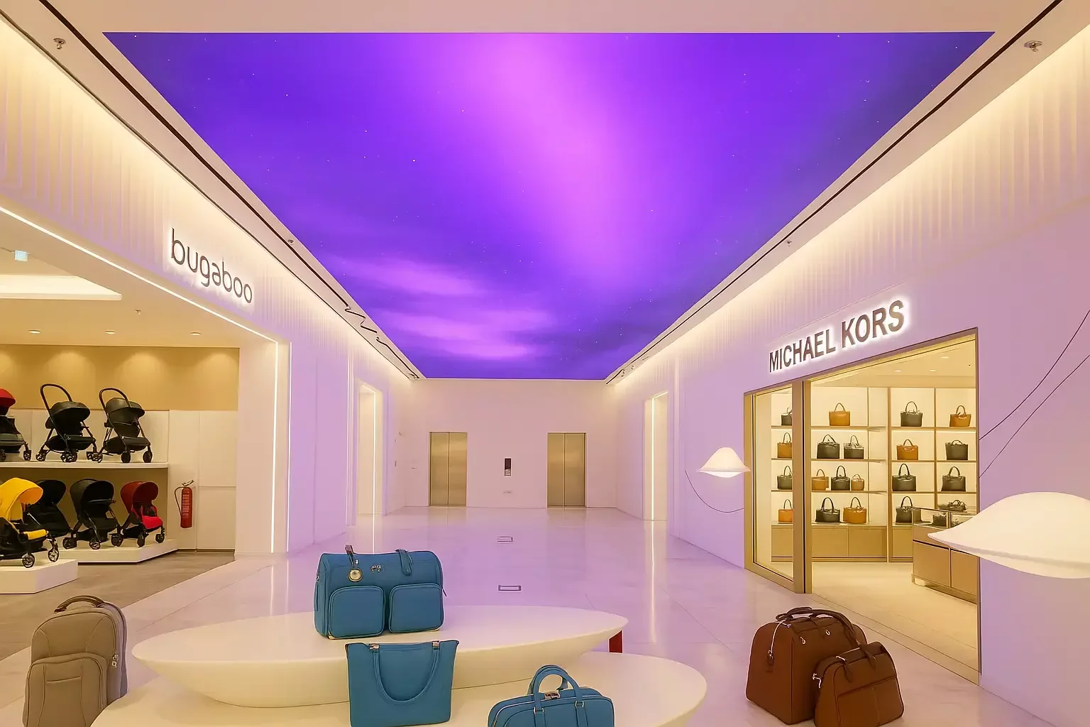 A stretch ceiling is a suspended system involving a perimeter track and a lightweight fabric membrane that stretches across the existing ceiling and clips into the track.This versatile solution can conceal imperfections and integrate all types of lighting fixtures, grilles, and fixing points, enhancing both aesthetics and functionality.